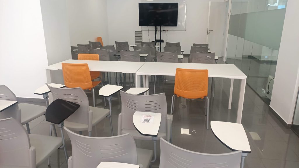 Las aulas están equipadas con pizarras digitales, proyector y conexión online, lo que permite combinar las clases presenciales con la modalidad virtual sin perder calidad ni atención personalizada.